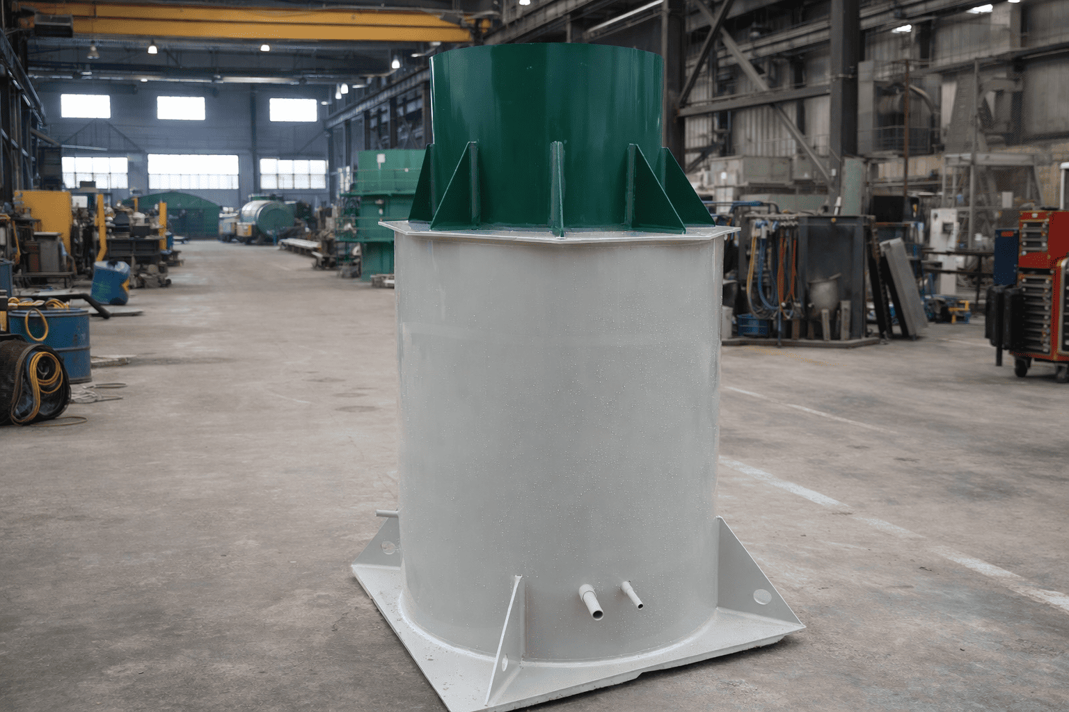 Кессон ТВЕРЬ изготовлен из монолитного полипропилена толщиной 8 мм и представляет собой герметичную цилиндрическую конструкцию, включающую: